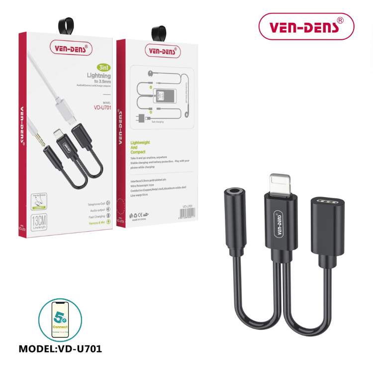 3 In 1 Lightning To 3.5mm Audio & Charge Adapter (13cm)